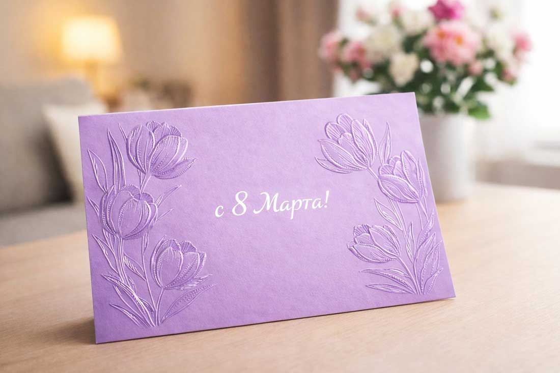 Если открытка идет в конверте, рельеф лучше не тянуть к краю. Небольшие поля уменьшают трение, и поверхность дольше сохраняет внешний вид. Поле под подпись лучше оставить без отделки, чтобы текст от руки не терялся на бликах.