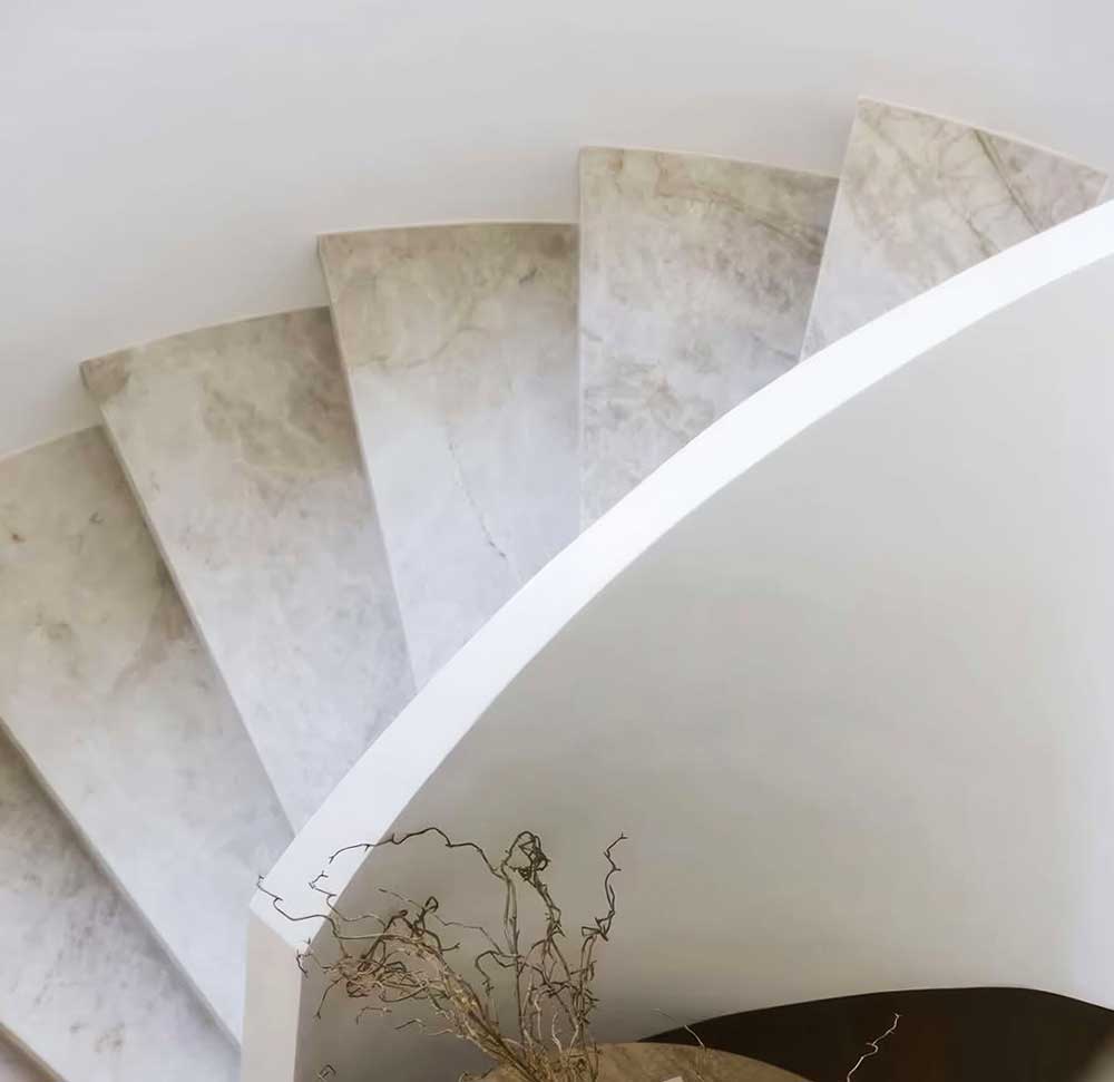 Обращайтесь к нам в The Stone Collection - поможем подобрать идеальный кварцит, разработаем дизайн и установим лестницу под ключ именно для вашего дома.